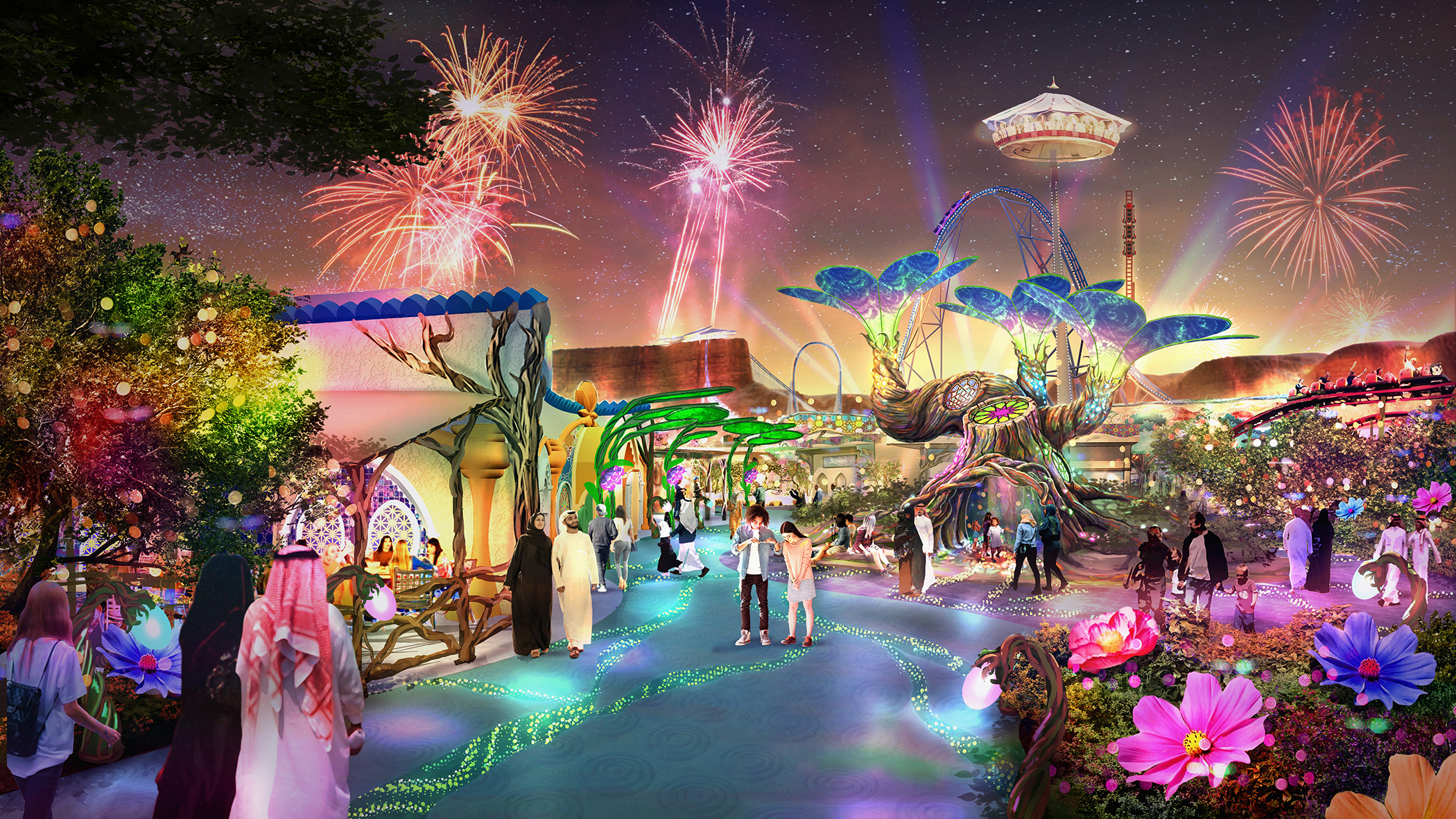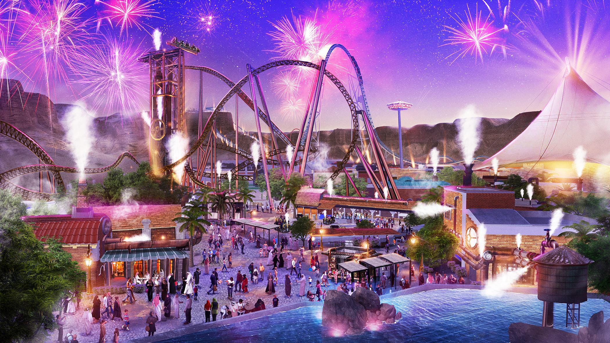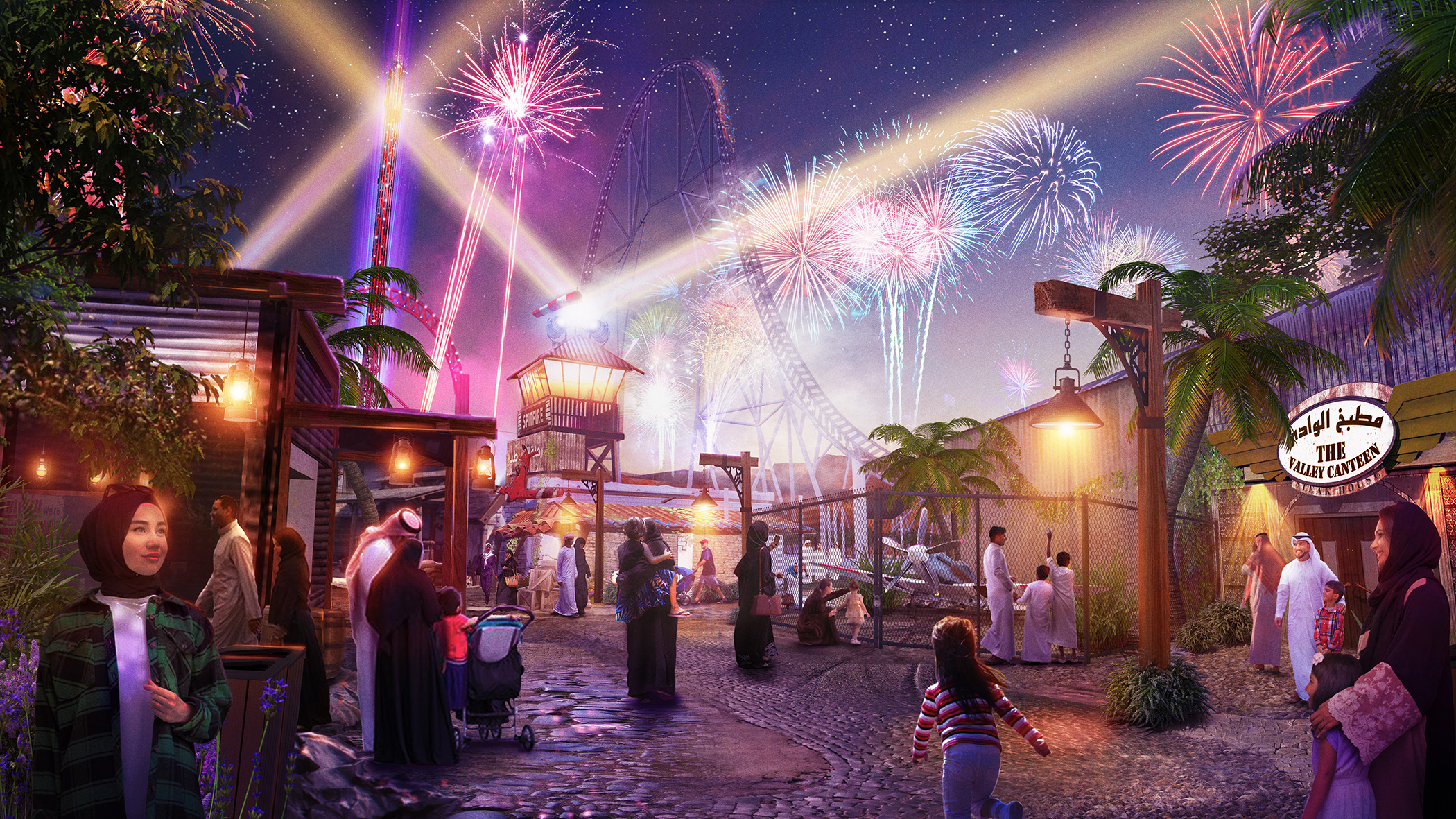 In addition to the rides, Six Flags Qiddiya City will offer a diverse visitor experience: about 29 international dining outlets, 25 unique retail shops, themed environments that alternate between high energy and more serene escapes, as well as shows, immersive design, and family-friendly amenities.